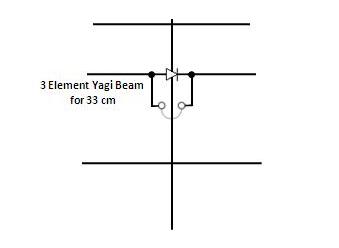 A 3 Element Yagi Beam for 33 cm was made using a broken snare drum stick for the boom and 20 SWG bare copper wire for the elements.